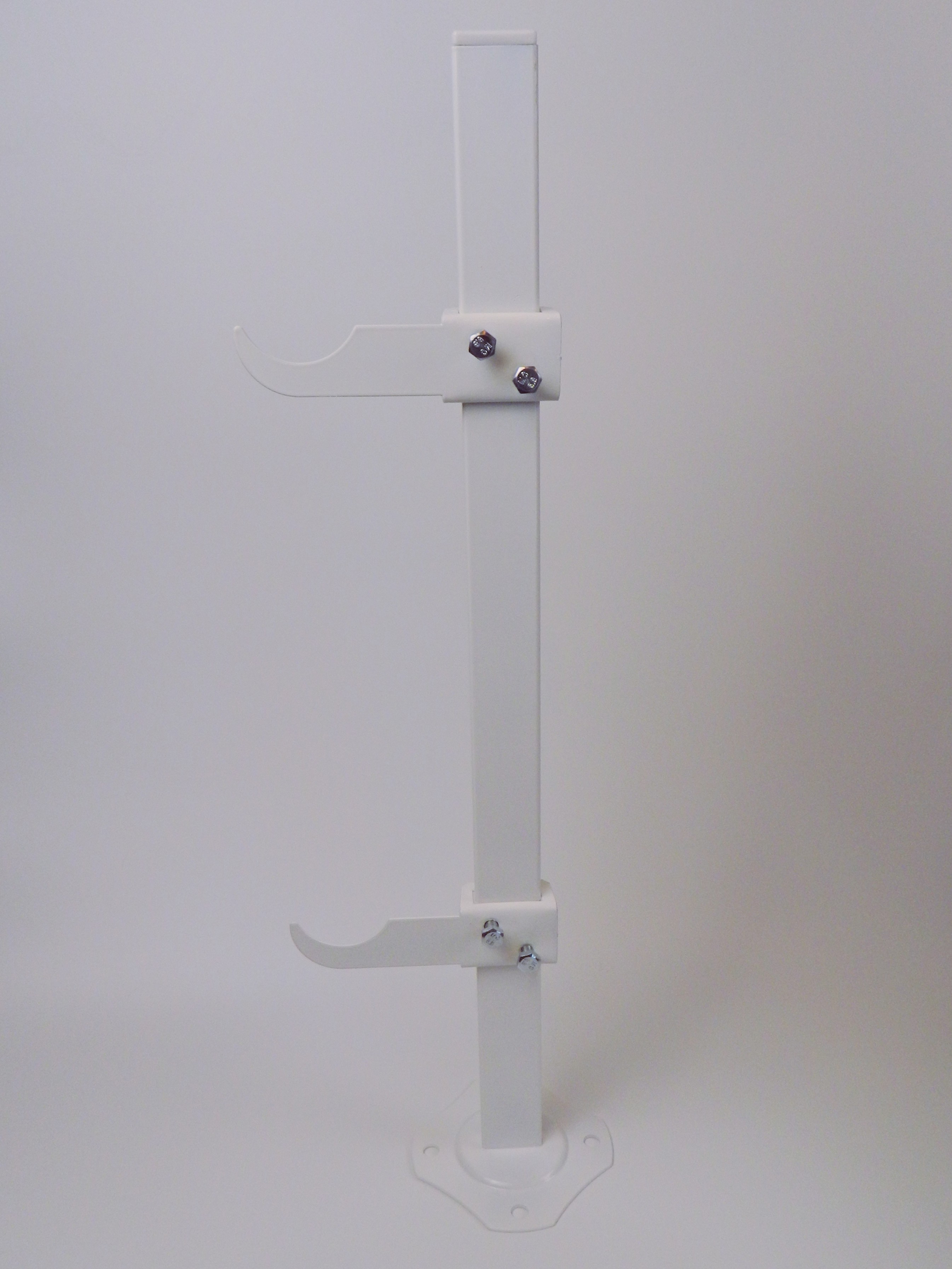 А11.11 Кронштейн напольный регулируемый Кайрос для алюминиевых и биметаллических радиаторов высотой 200-800 мм. Высота стойки кронштейна 1000 мм. Кронштейн предназначен для крепления алюминиевых и биметаллических радиаторов при отсутствии возможности настенной навески. Конструктивно кронштейн представляет собой стойку с расположенными на ней и имеющими возможность регулирования двумя кронштейнами. После осуществления регулировки кронштейны фиксируются двумя болтами М6 каждый. Стойка представляет собой штангу жесткосоединенную с основанием. Основание имеет четыре паза шириной для крепления кронштейна к поверхности пола. На штанге расположены два регулируемых кронштейна. Каждый кронштейн состоит из обечайки и крюка, соединенных способом сварки. Материал штанги-труба 30х10х1,2мм Материал основания-лист 1,8 мм Материал крюка-лист 1,8 мм На верхний край штанги устанавливается заглушка из полимерных материалов. Радиус посадочного места крюка-23 мм Вылет крюка (до обечайки) -59 мм Покрытие кронштейна: полимерное порошковое (цвет белый RAL 9016). Максимально допустимая нагрузка на кронштейн -450 Н (45 кг). Рекомендации по подбору кронштейнов в зависимости от длины радиатора: 250-1200 мм по 2 кронштейна на радиатор, 1300-1800 мм по 3 кронштейна на радиатор, 1900-3000 мм по 4 кронштейна на радиатор. Производитель имеет право без предварительного уведомления вносить изменения в изделие, которое не ухудшает его технические характеристики, а является результатом работ по усовершенствованию его конструкции или технологии производства. Изделие не подлежит обязательной сертификации.