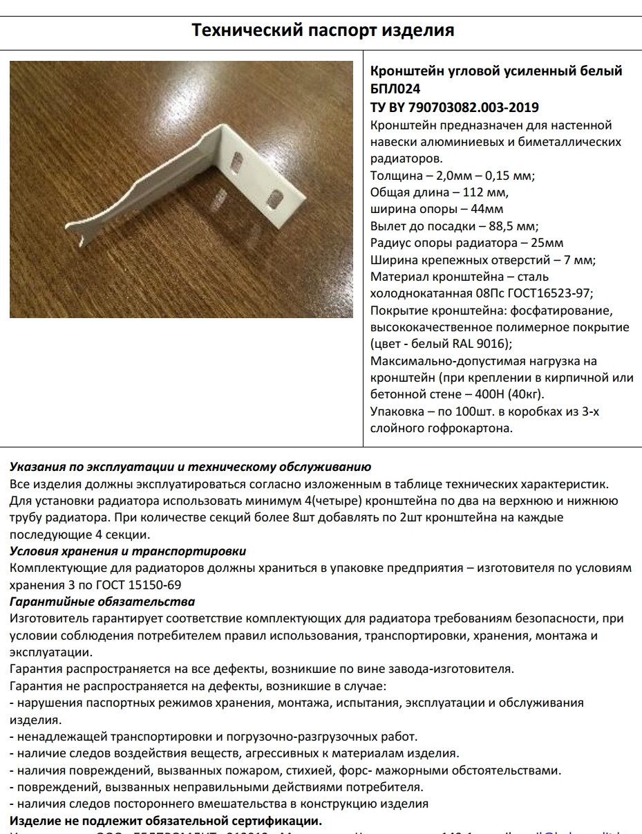 Материал кронштейна-сталь. Покрытие кронштейна: полимерное (цвет белый RAL 9016).