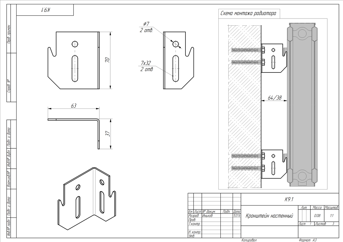 Кронштейн угловой оцинкованный Кайрос для стальных панельных радиаторов.