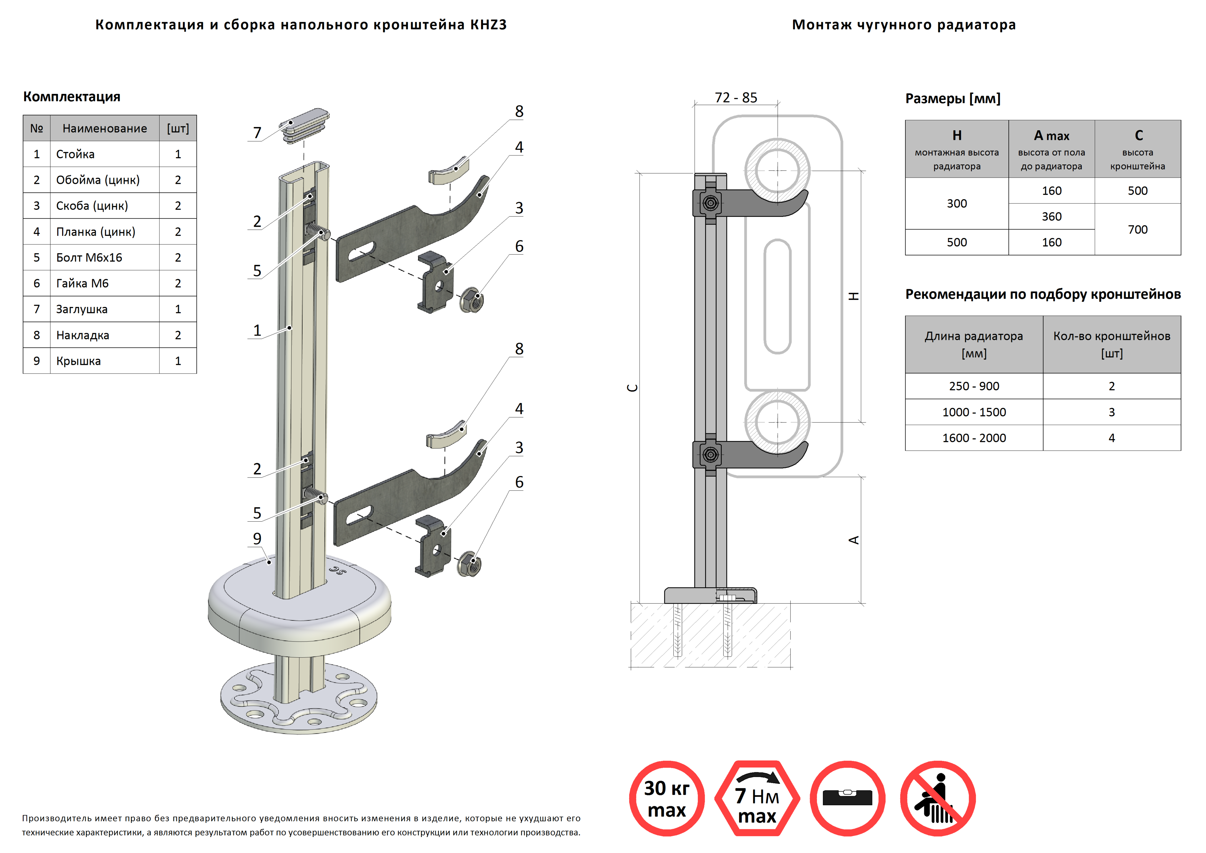 В нашем магазине представлены KHZ3.50 с высотой стойки 500 мм для радиаторов высотой 300 мм и KHZ3.70 с высотой стойки 700 мм для радиаторов высотой 500 мм.