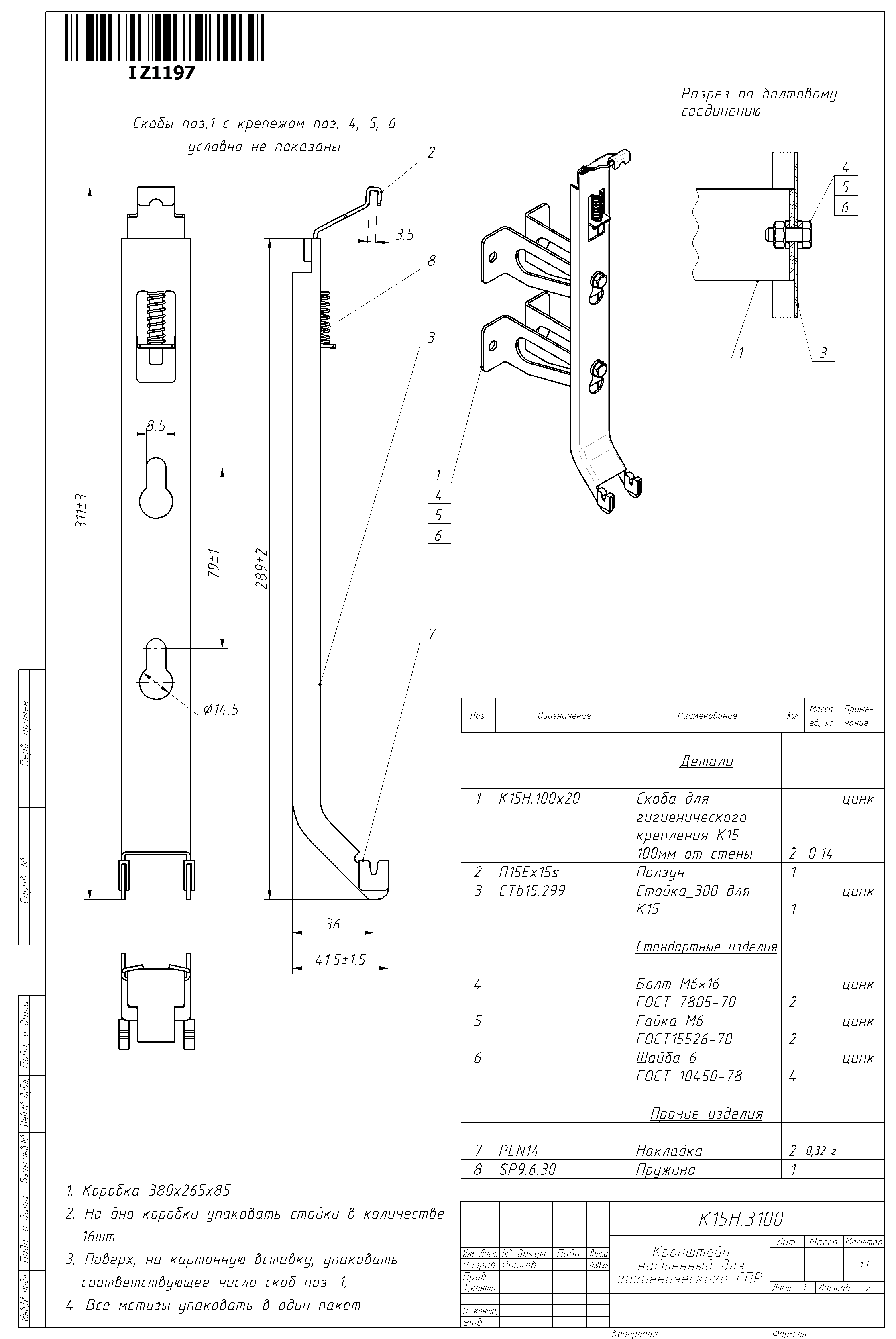 К15Н.3100 Кронштейн настенный Кайрос для гигиенических стальных панельных радиаторов высотой 300 мм в сборе со скобами. Возможность поставить радиаторы на расстоянии 100 мм от стены. Глубина крюка 3,5 мм, сделан для гигиены, значительно уже чем у К15.3 для СПР обычных, у них глубина 11 мм! Скоба 2 шт идут в комплекте, длина скобы 83 мм (смотри чертеж). Чтобы собрать изделие крепеж идет в комплекте, в чертеже также указано и на фото что идет. Крепеж к стене приобретается отдельно как и для всех кронштейнов, представленных у нас в магазине.